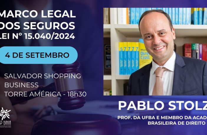 O Clube de Seguros de Pessoas e Benefícios da Bahia (CSP Bahia) promove no dia 4 de setembro, às 18h30, uma palestra sobre os impactos da Lei nº 15.040/2024, conhecida como novo Marco Legal dos Seguros, ministrada pelo juiz Pablo Stolze. O encontro acontecerá no Salvador Shopping Business – Torre América, em Salvador (BA).